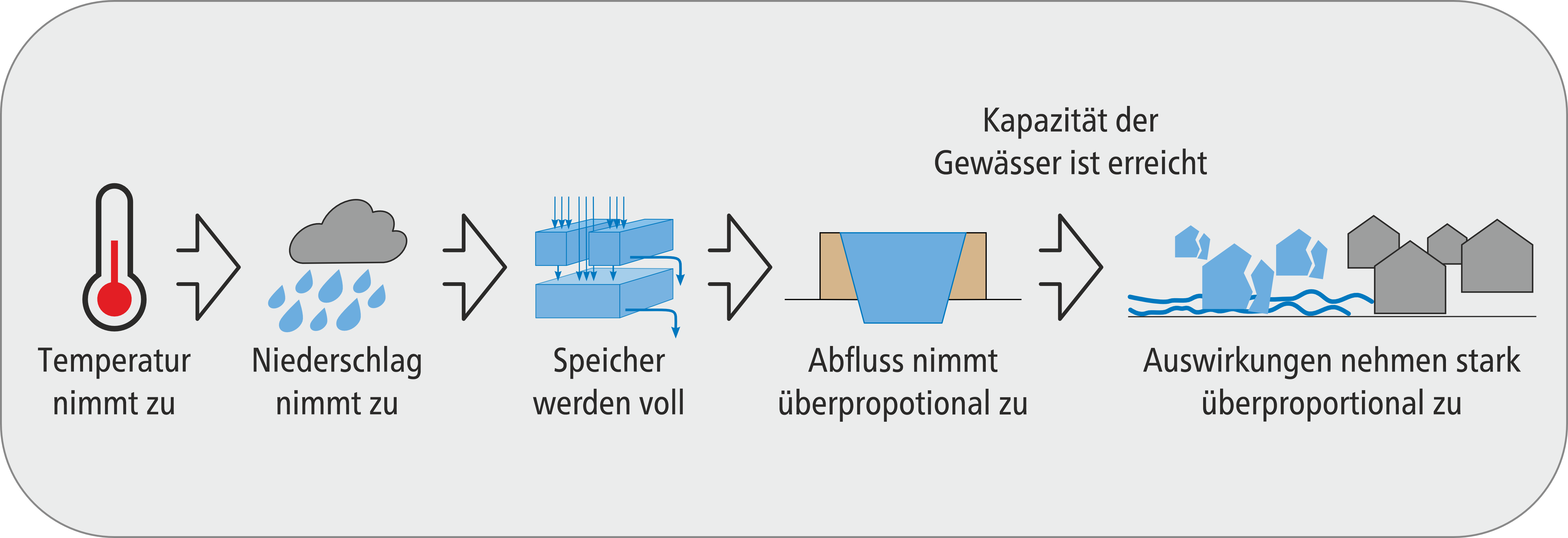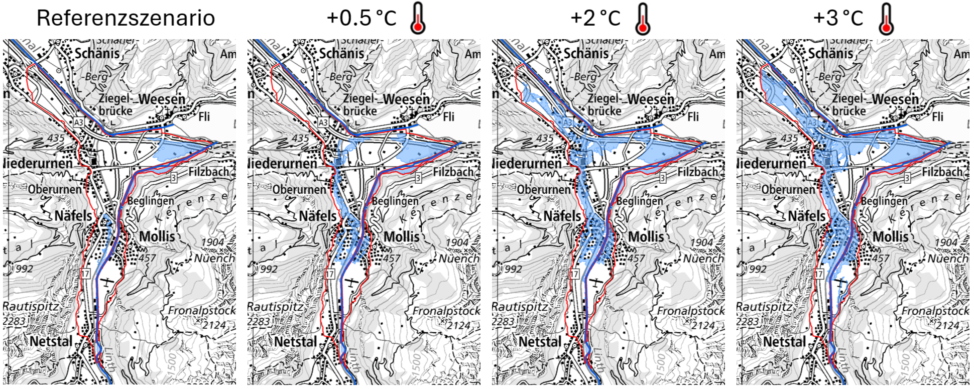 Das Mobiliar Lab arbeitet momentan daran, die beschriebene Methode zu verfeinern und eine Modellkette aufzubauen. Sie soll ermöglichen, mit Niederschlagsszenarien als Eingangsgrösse die resultierenden Überflutungen und Gebäudeschäden abzuschätzen. Wie eine solche Modellkette erfolgreich umgesetzt werden kann, zeigt exemplarisch der nachfolgende Artikel «Vom globalen Klimamodell zum Schaden auf Einzelgebäudeebene» anhand des Einzugsgebiets der Aare.