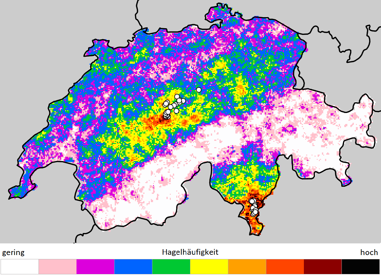 Die Hagelmeldefunktion in der App der MeteoSchweiz, in der Nutzerinnen und Nutzer ihre Beobachtungen zu Hagel erfassen können, liefert der Forschung seit 2015 wertvolle Hinweise. Über 250‘000 der bisher erfassten Meldungen sind für die Verbesserung der Hagelwarnungen von grosser Bedeutung. Dank dem Messnetz können zusätzliche wichtige Parameter und Daten gesammelt werden.